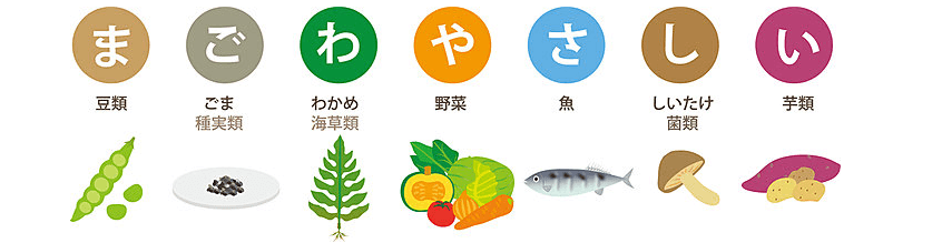 Trong chế độ dinh dưỡng cần ăn nhiều các thực phẩm như sau: đỗ, vừng, rong biển, rau, cá, nấm và khoai lang. Để dễ nhớ đơn giản đó là thuộc câu: 孫は優しい (đứa cháu hiền lành) được miêu tả như hình dưới nhé.